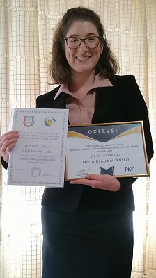 Klaudia már a kezdetektől nagyon érdeklődött az idegen nyelvek iránt. Precíz, ötletes fogalmazásokat írt, és minden témában gondolatgazdag, színvonalas módját választotta a feladat megoldásának. Szóban is igényesen fejezi ki magát, és számtalanszor bebizonyította, hogy az idegen nyelvek tanulásának nem csak „hasznossága” van, hanem hatással van gondolkodásmódunkra, és hozzásegít bennünket, hogy a nyelvtanuláson és nyelvtudáson keresztül megértőbbé és elfogadóbbá váljunk más kultúrák iránt, és magabiztosabban mozogjunk számunkra még idegen környezetben is. Évek óta szép eredményeket tudhat magáénak az OKTV döntőben spanyol nyelvből.